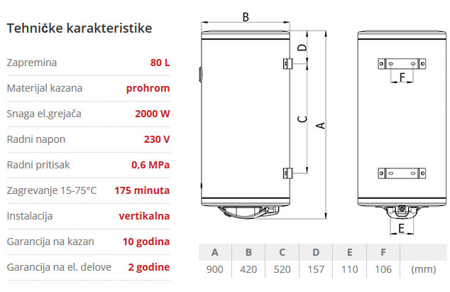 | Mesto za upotrebu | Bojler za kupatilo |