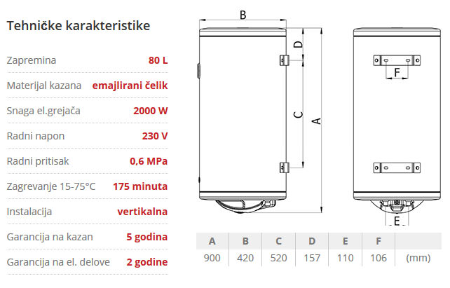| Zapremina | 80l |