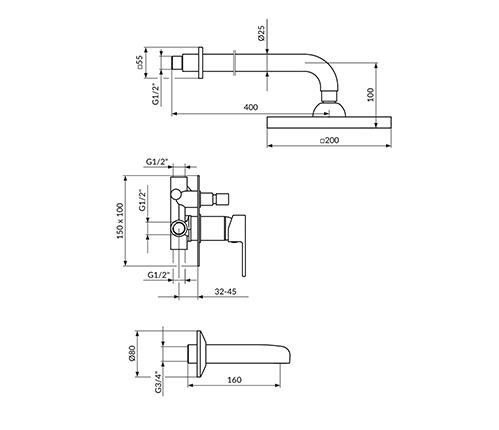 - Konzola tuša L. 400mm