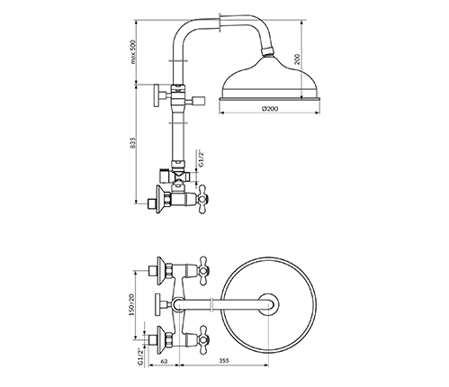 BATERIJA ZA KADU SA USPONSKIM TUŠEM NOSTALGIJA – ROSAN N10251