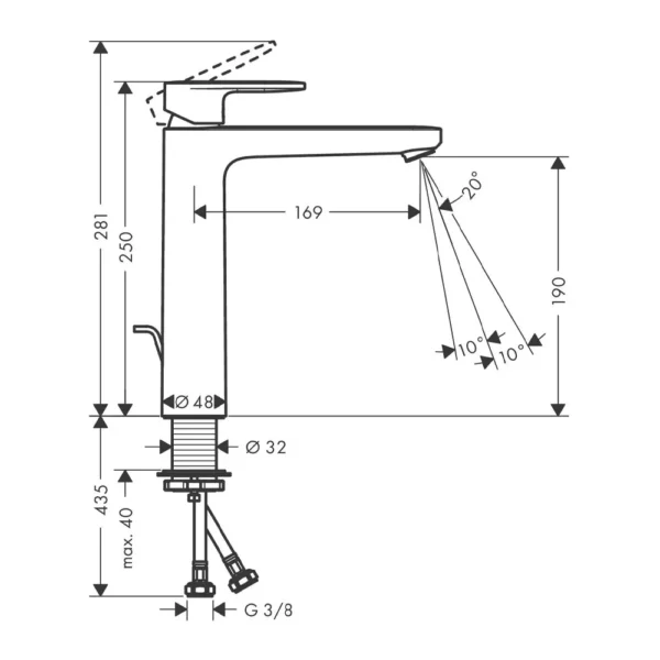 • Dužina izliva slavine: 169 mm