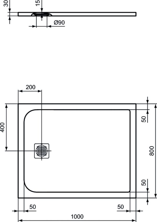 • Ultra-tanka 30mm tuš kada napravljena od IDEAL SOLID materijala