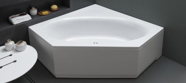 Ugradna ugaona kada za kupanje od livenog sanitarnog akrila nudi elegantno rešenje za prostor čak i u manjim kupatilima.Kada nudi mogućnost ugradnje hromoterapije.