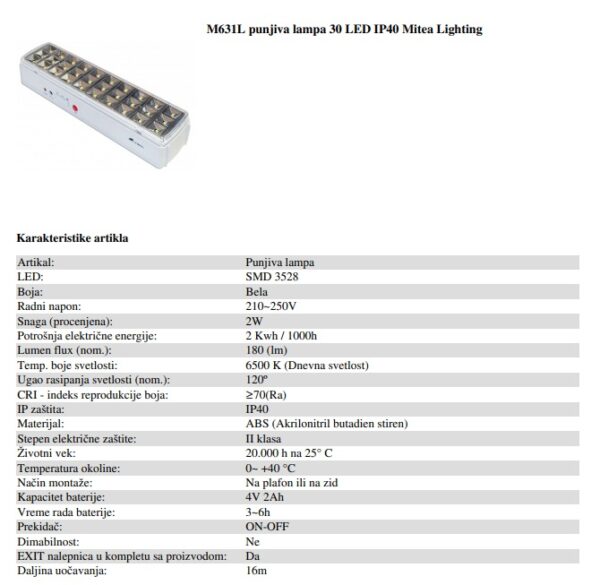 - Temp. boje svetl.:6500 K (Dnevna svetl.)