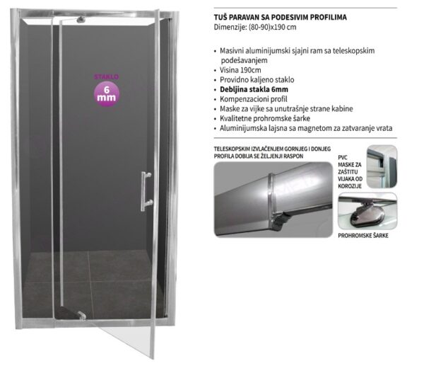 TUŠ VRATA U DIMENZIJI OD 80cm – 90cm.